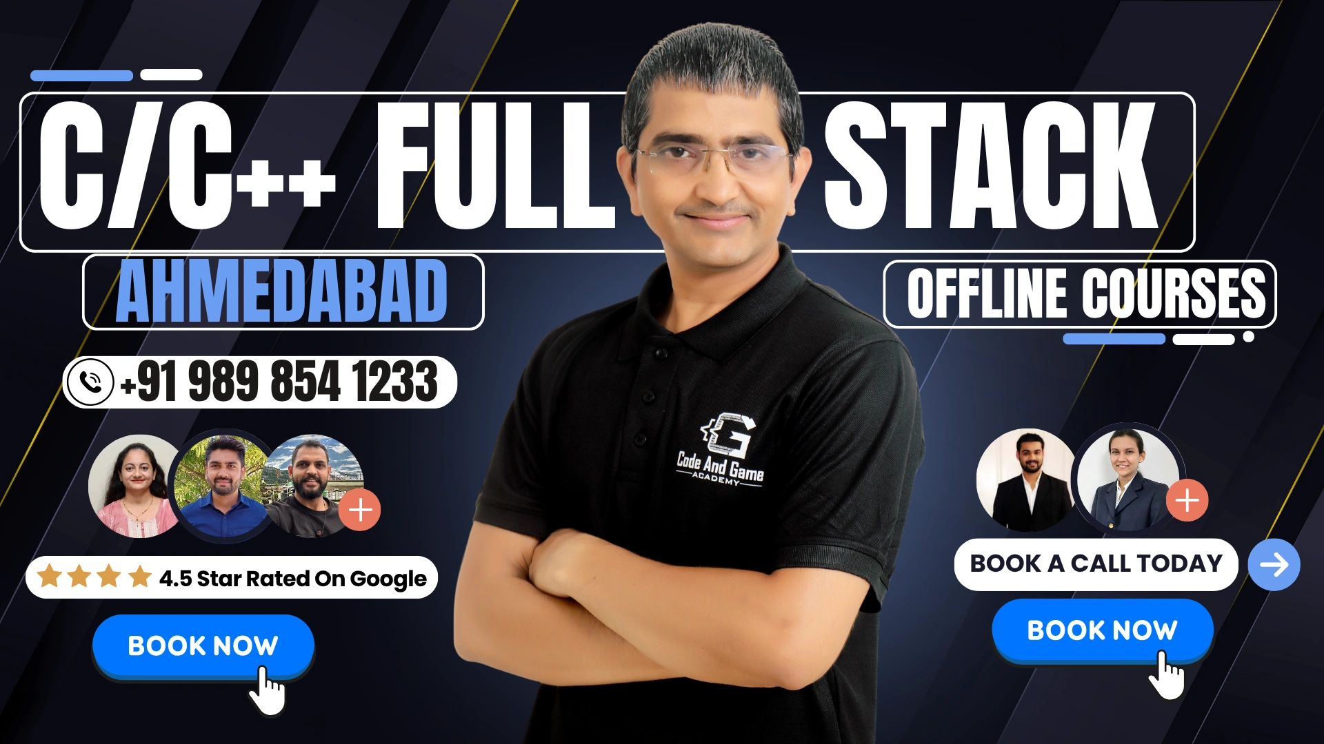 Join Code & Game Academy for an offline C/C++ course led by expert Mahesh Gurjar. This beginner-friendly classroom program helps you learn core programming concepts with live coding, hands-on practice, and personal doubt-clearing support. Build a strong foundation through real-world examples and projects. Enroll now and start coding confidently!
